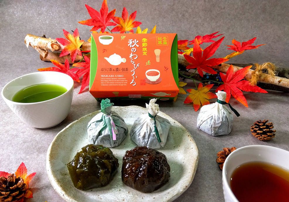 季節のわらびういろを詰め合わせた5個入。甘みとほろ苦さのバランスにこだわった”濃い抹茶わらびういろ”2個と、深い香りとコクを感じられる”ほうじ茶わらびういろ”3個の詰め合わせ。